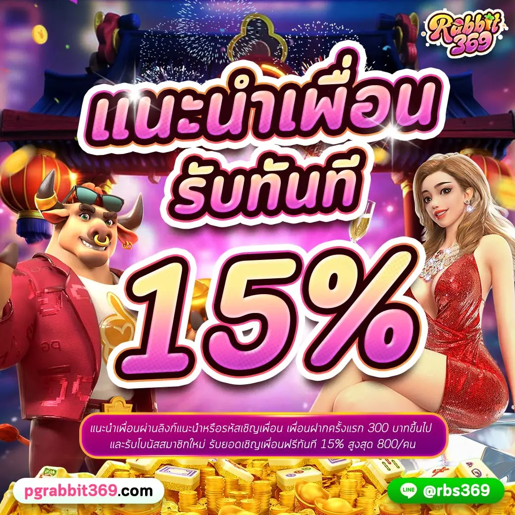 โปรแนะนำเพื่อน รับโบนัสฟรีทันที 15%